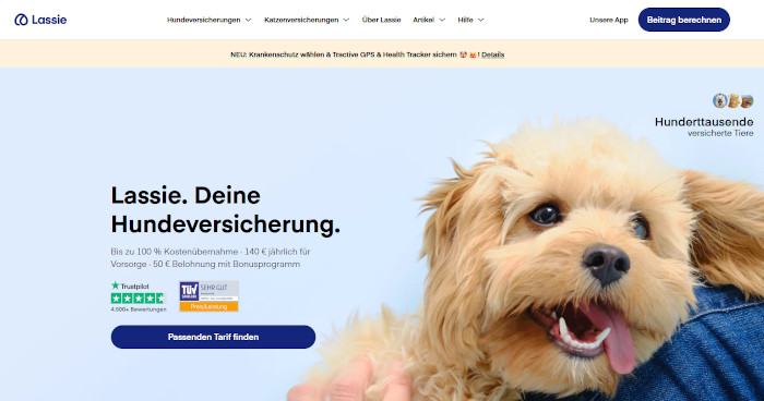 Lassie hat 3 verschiedene Versicherungstarife für den Krankenvollschutz Ihres Hundes im Portfolio: Mini, Midi und Maxi. Auf der Webseite können Tierhalter die Gebühren für ihr Tier mit dem Rechner individuell ermitteln. Bei Fragen steht eine Chat-Funktion bereit.