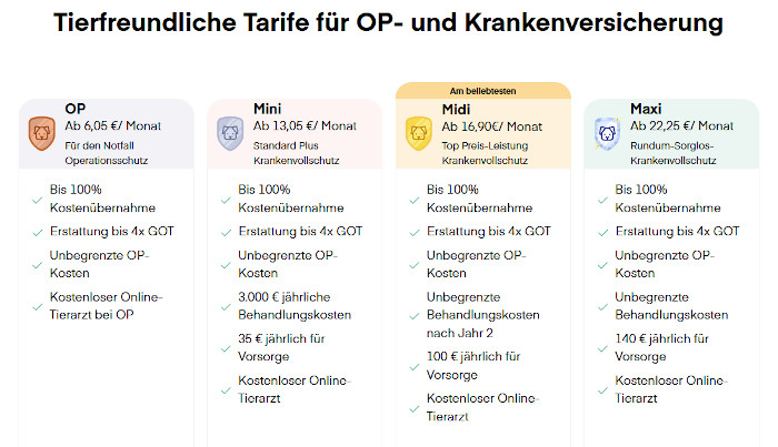 Sehr gut finde ich die verschiedenen Wahlmöglichkeiten für die Pakete und das auch ältere Tiere für einen doch erschwinglichen Preis versichert werden können.