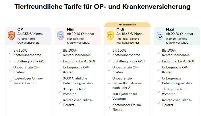 Sehr gut finde ich die verschiedenen Wahlmöglichkeiten für die Pakete und das auch ältere Tiere für einen doch erschwinglichen Preis versichert werden können.